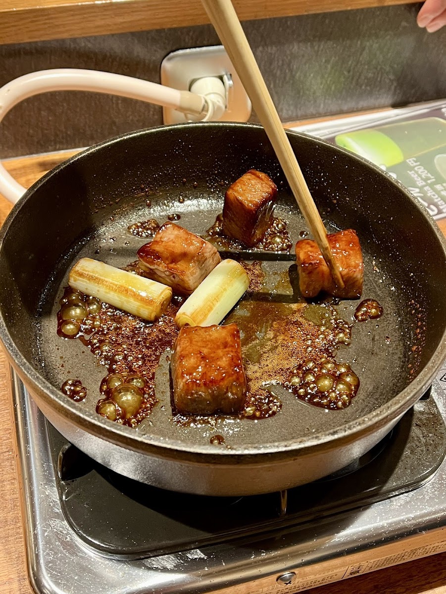 Highly recommend stopping here for a great wagyu experience. We're from the US looking to try a nicer wagyu spot for dinner, but we were overwhelmed with not only the number of places to eat in Ponchoto alley, but our unfamiliarity with the different styles of cooking, preparation, etc. This restaurant really covered the bases for us, offering 3 styles of consuming wagyu, and all are prepared for you right at your table by your server, so not only are you getting variety and a delicious meal, but you have the entertainment of the preparation as well. If you're in a similar position that we were, reading reviews and trying to figure out where to go, rest assured this is an excellent choice. Staff are extremely friendly, cool and clean environment with fun jazz playing in the background. 5/5